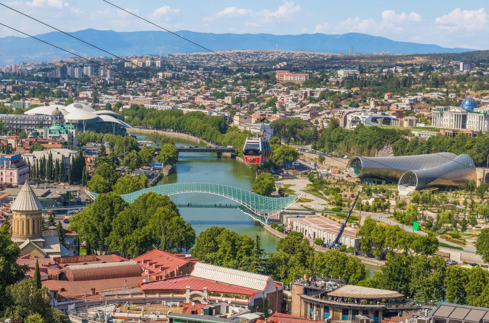 Barış Köprüsü: Fiyonk şeklinde tasarlanmış çelik ve cam konstrüksiyonu olan köprü. Mtkvari Nehri üzerindeki bu köprü, Rike Park ile Eski Tiflis’i birbirine bağlıyor.